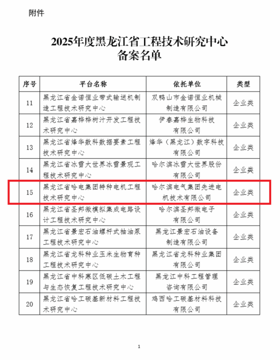 近日,黑龍江省科學(xué)技術(shù)廳發(fā)布了《關(guān)于2025年度黑龍江省工程技術(shù)研究中心擬備案名單的公示》。經(jīng)單位申報、市地推薦、專家評審等程序,哈電集團佳電股份全資子公司先進電機技術(shù)有限公司(以下簡稱“先進電機公司”)申報的“黑龍江省哈電集團特種電機工程技術(shù)研究中心”成功進入2025年度黑龍江省工程技術(shù)研究中心備案名單,這一成果不僅標志著先進電機公司在構(gòu)建高層次研發(fā)平臺、深化產(chǎn)學(xué)研合作領(lǐng)域?qū)崿F(xiàn)新突破,更體現(xiàn)了黑龍江省對佳電股份在特種電機領(lǐng)域長期投入、技術(shù)積淀及工程化能力的權(quán)威認可與高度肯定。